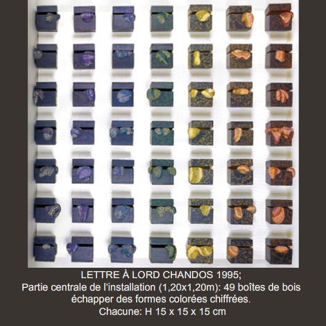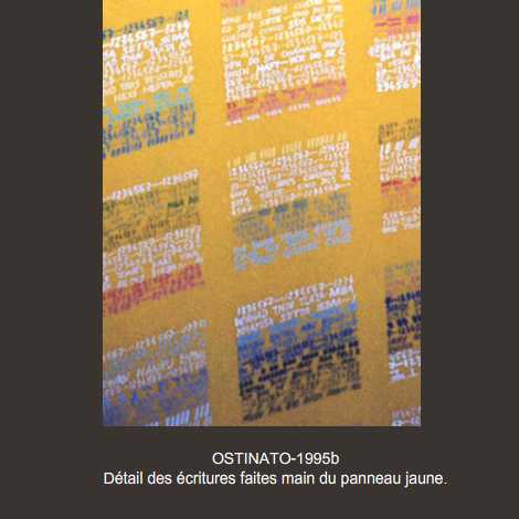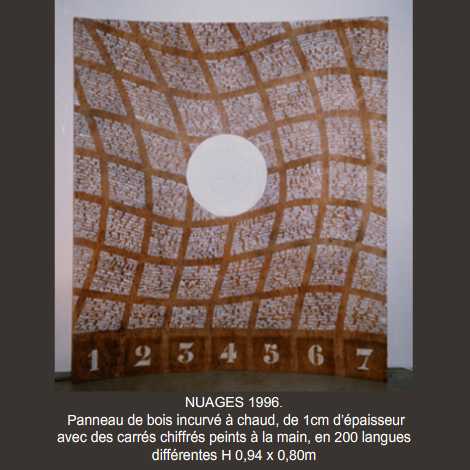 Ce fut le cas pour les dernières expositions en Inde de 2004, 2005, et 2006. J’ai en effet utilisé ‘l’ossature’ des séries de 7 en imprimant ‘1-2-3-4-5-6-7’ en 260 langues différentes anciennes et contemporaines sur des tissus selon la technique artisanale indienne d’impression sur tissu. Pour ce faire, je grave des blocs de bois de teck avec mon écriture à l’envers. Je peux travailler actuellement avec 5300 langues répertoriées. Et j’arrète là ma recherche commencée en 1992...