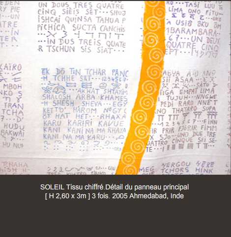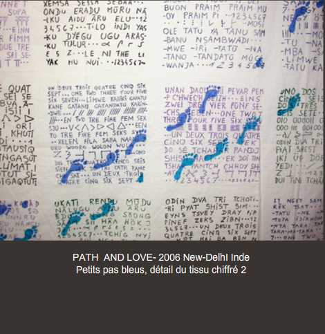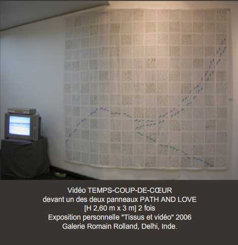Jean-Louis VIeillard-Baron, professeur à l’université de Poitiers, spécialiste de la durée chez Bergson, s’est passionné pour ces réalisations ‘ Tissus de l’humanité’. Il les a mises en rapport avec mon installation-parcours- INCANTARE créée en 1990-91, matérialisant l’intensité de vécu pour une personne. C’est ce qu’il a écrit dans l’envoi du livre ‘Catalàa libre parcours’ paru en octobre 2007 aux éditions Thalia.